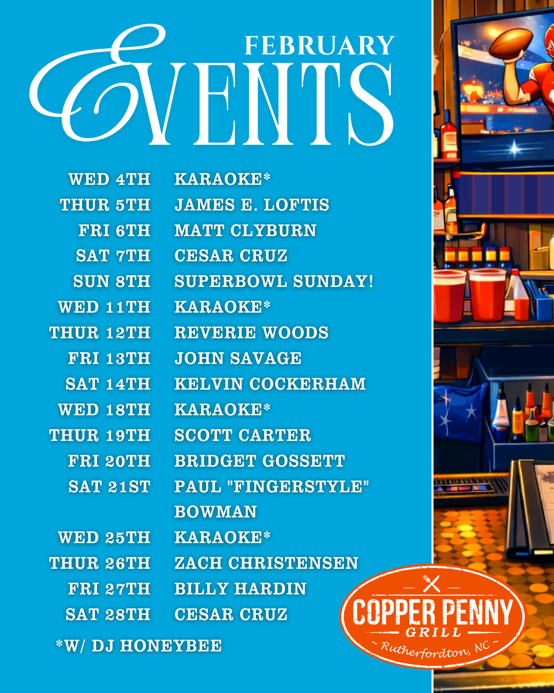 Every Thursday at Copper Penny Grill, Rutherfordton