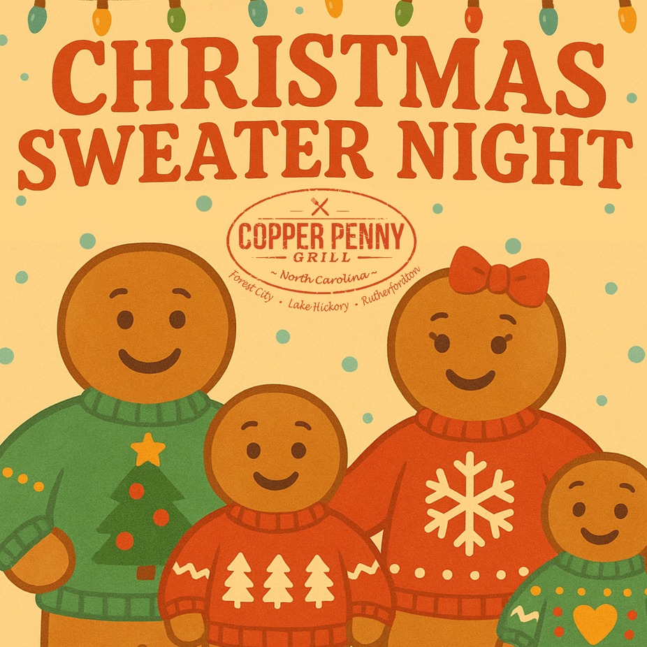 Gingerbread Christmas is here all December long! Step into gingerbread-themed décor, snap a few sweet photos, and enjoy limited-time Christmas treats on the menu. We’re hosting festive, family-friendly events all month long—stay tuned for the schedule. Bring the whole crew and celebrate the sweetest season at Copper Penny Grill.